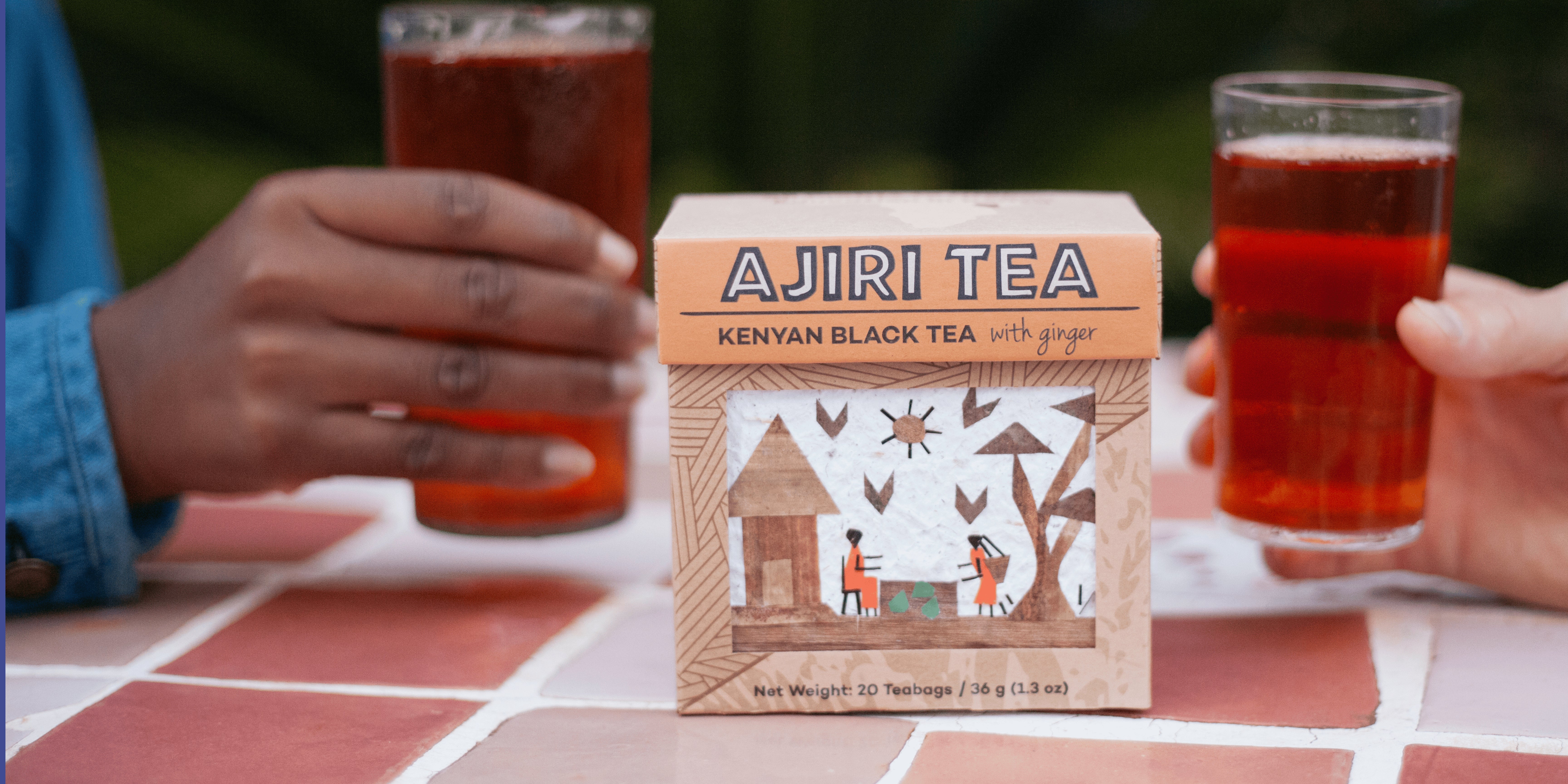 Tea and Coffee Shop GiftsOur award-winning Kenyan Black Tea is grown in the green, fertile Kisii Hills of western Kenya. Ajiri means "to employ" in Swahili. Our goal is to create employment for women in western Kenya. Each unique label is handmade using dried banana bark. All profits from sales of Ajiri Tea are donated to the Ajiri Foundation to pay school fees for orphans in western Kenya.